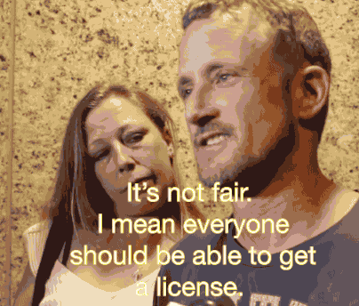 What it seems like he's about to say is "It's not fair. I mean, everyone [meaning straight people] should be able to get a license even if Alabama is fighting this fight with gay people."