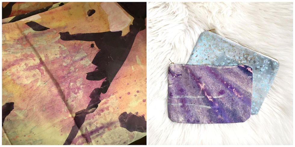 The massive backdrops are then cut up and stitched into simple, super cute, rectangular clutches.