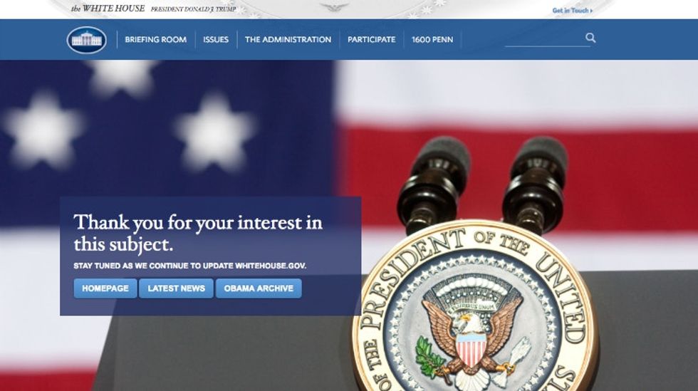 Just as Trump was inaugurated into office, several White House pages on various issues temporarily disappeared as the new administration took over — not an uncommon hiccup during a presidential transition. Obama's page dedicated to LGBTQ matters, however, still hasn't been replaced.