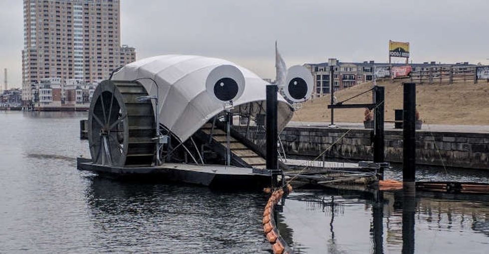 How did a group of business owners, environmentalists, and activists turn a giant, floating dumpster into an unofficial mascot of Baltimore?