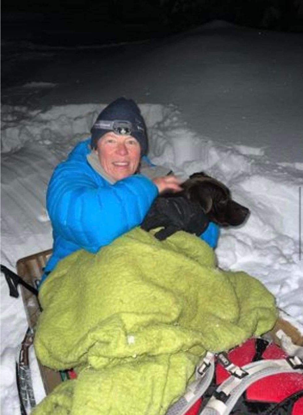 When Russ finally allowed his head to rest on Gaule’s hand, the women wrapped him up in a blanket, placed him on a sled (given by El Dorado County Animal Services Officer Kyle Shumaker) and slowly brought him to the bottom of the hill. The whole endeavor took several hours.