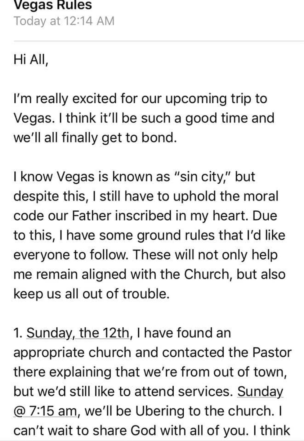 This woman's 'Vegas Rules' list for her friend's bachelorette party is the perfect example of what NOT to do.