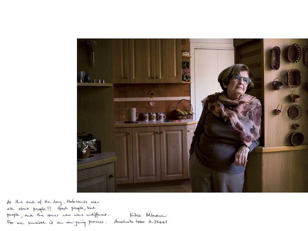 Every person featured in the series is a survivor of the Holocaust. Each portrait is accompanied by a caption, written in their own handwriting. The messages range from feelings of unquenched anger, to peaceful resolution, to hope for the future.