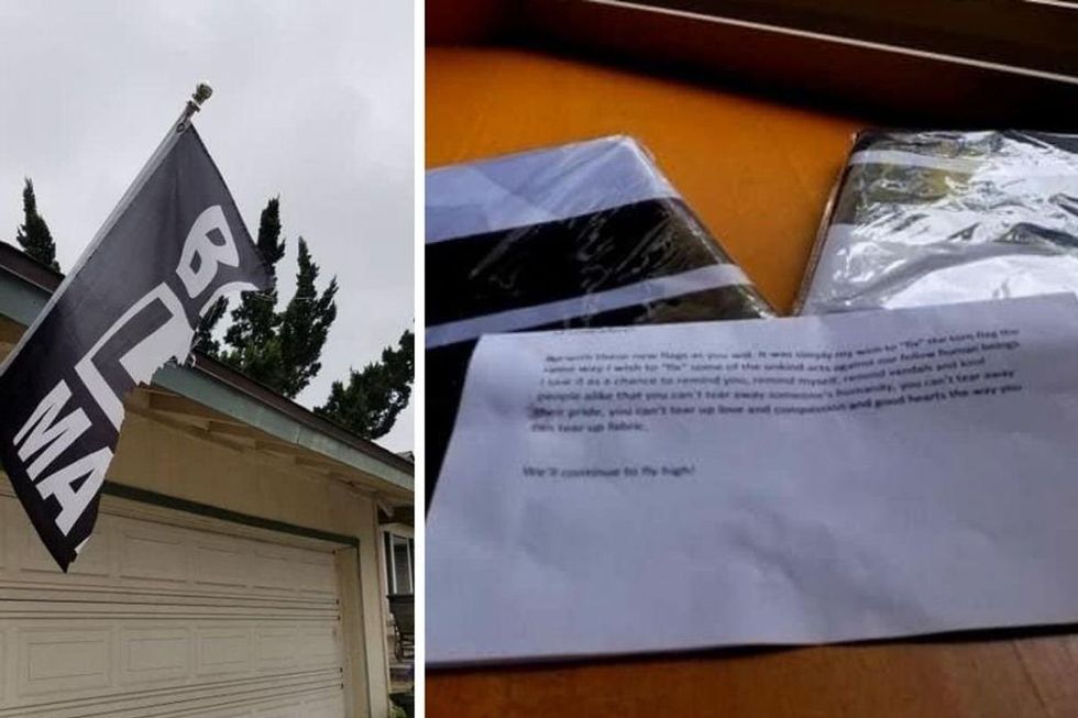 The Millers weren't terribly surprised to find their Black Lives Matter flag vandalized, but an anonymous neighbor who bought them two replacement flags left a note that restored their faith. "I saw it as a chance to remind you, remind myself, remind vandals and kind people alike that you can't tear away someone's humanity, you can't tear away their pride, you can't tear up love and compassion and good hearts the way you can tear up the fabric." Read the full story here.