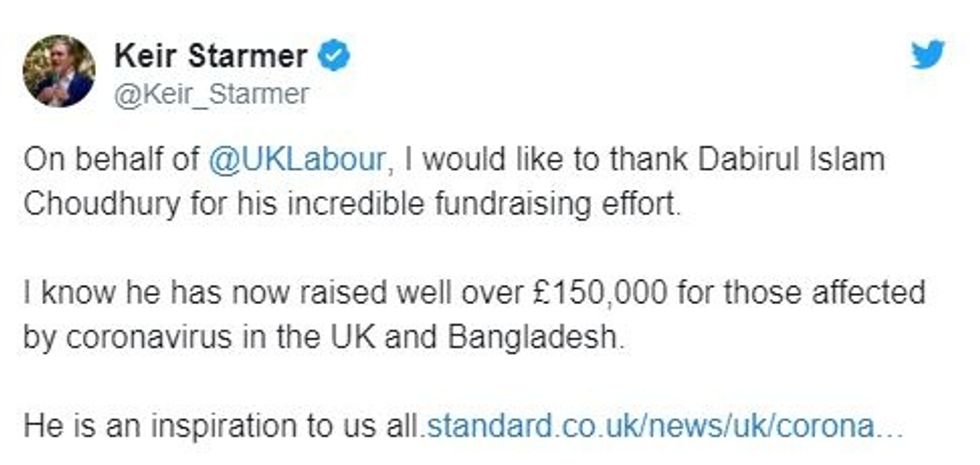 Choudhury's efforts won him praise from Labour leader Sir Keir Starmer. "On behalf of @UKLabour, I would like to thank Dabirul Islam Choudhury for his incredible fundraising effort," the Labour leader tweeted.