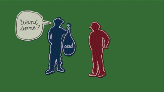 Not all hope is lost (yay!). It may be an uphill battle, but there are lots of small farmers working to preserve the freedom to freely share and use seeds. People store thousands of seeds from all around the world in buildings called seed banks, and trade with other farmers at seed swaps.