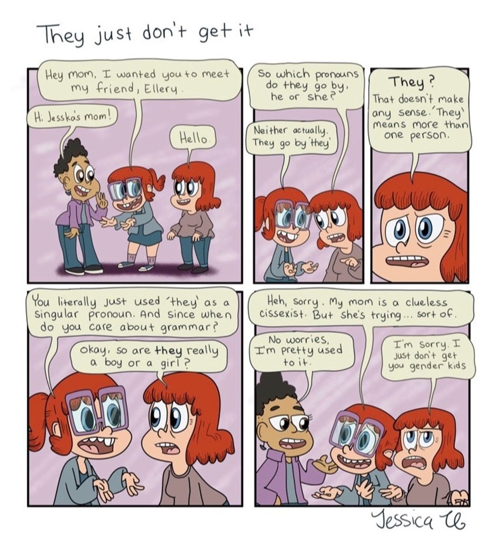 (Psst: If you're unfamiliar with any of the terms used in these comics, check out this awesome glossary of trans-related words on author Julia Serano's website.)