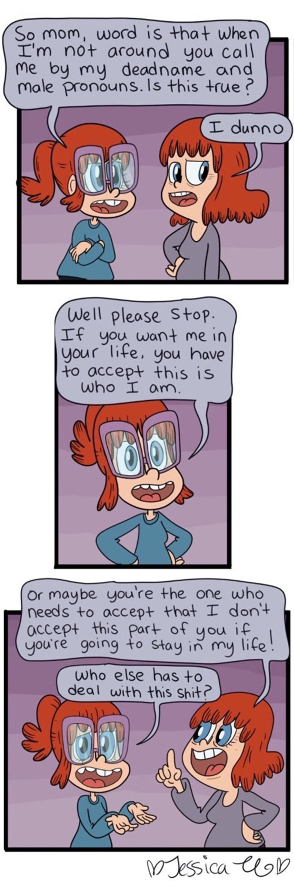 She kept writing, drawing, and finding her audience. While she doesn't necessarily make her comic for people unfamiliar with trans issues, if someone learns something new, that's a great bonus.