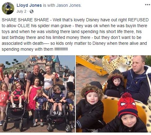 Ollie Jones lost his life to leukodystrophy, a rare genetic disease, last December at the age of four. Ollie was a massive fan of Spider-Man, a Marvel character owned by the Walt Disney Corporation.