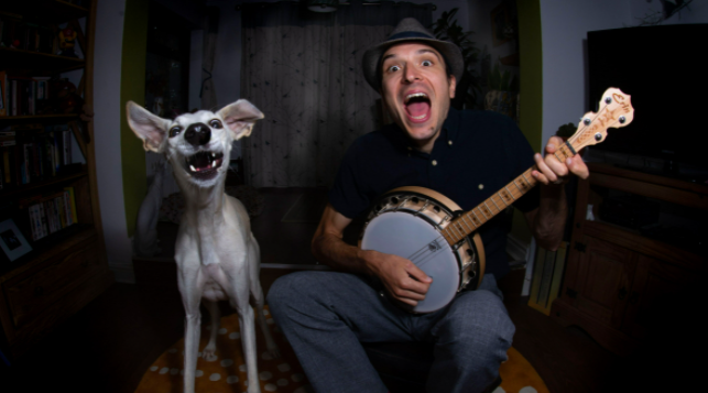 “Losing the opportunity to play with my human bandmates during lockdown, Flint, my rescue dog, soon taught me that we didn’t just have sharp bones in common, but musical ones, too. He soon became the perfect substitute for a collaborative stomp up at home, so much so that we felt we deserved our own band name (Muttford and Chum). With my camera set up remotely during this shoot, I think it’s fair to say that the image is proof that his conviction as a performer matches my own.” – Luke O’Brien.