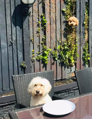 “According to Ozzy, we need a new fence panel ASAP. He is fed up with Chester our nosy next door neighbor spying on him every time he has a meal.” – Colin Doyle.