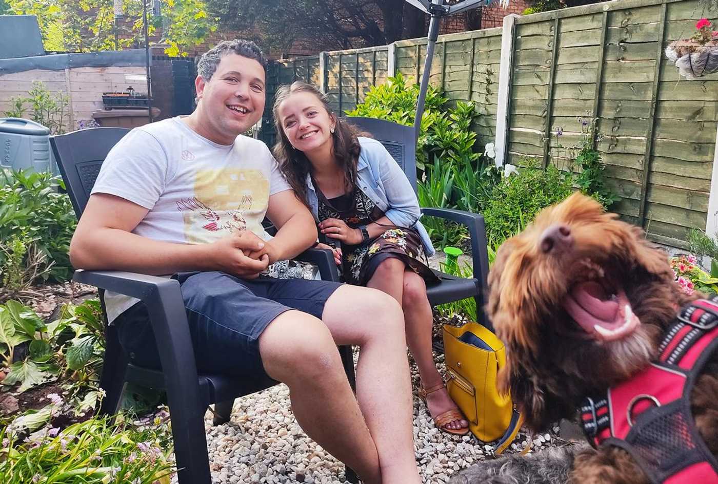 “This is my best friend Faith, her husband Alex, and their cheeky Sproodle, Hugo. Faith wanted a photograph to mark a special occasion—her first outing after shielding at home for 14 months. Hugo jumped into the frame at just the right moment!” – Chloe Beck