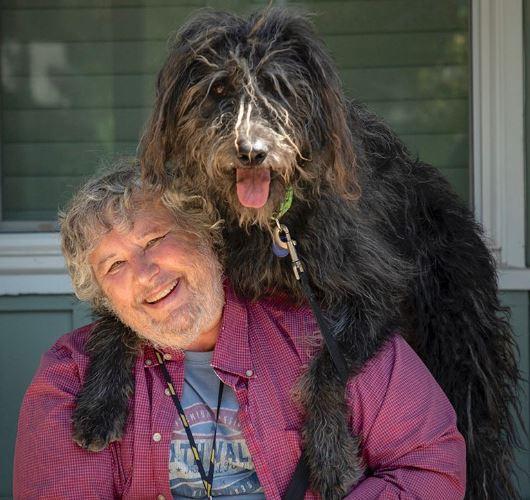 “This is my friend, David and his dog Dudley. During the early days of Covid, David and I took advantage of a beautiful day and we were out shooting pictures. Dudley was so excited when we got back that he threw his front paws around David’s shoulders and I snapped this picture. They both look like they could use a good haircut, but it was Covid….so who cares.” — Judy Nussenblatt