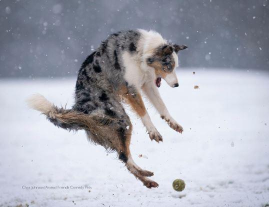“This is Star playing in the snow in a local field and getting surprised by a passing tennis ball.” — Christopher Johnson