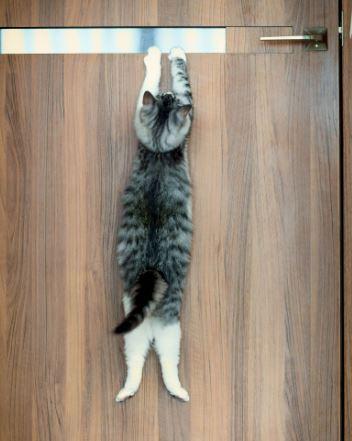 “She is my lovely kitty that is rescued from my local cat care facility. This is just a door that continued to a corridor. Sometimes she jumps up and holds a door when she is too desperate to go out.” — Kazutoshi Ono