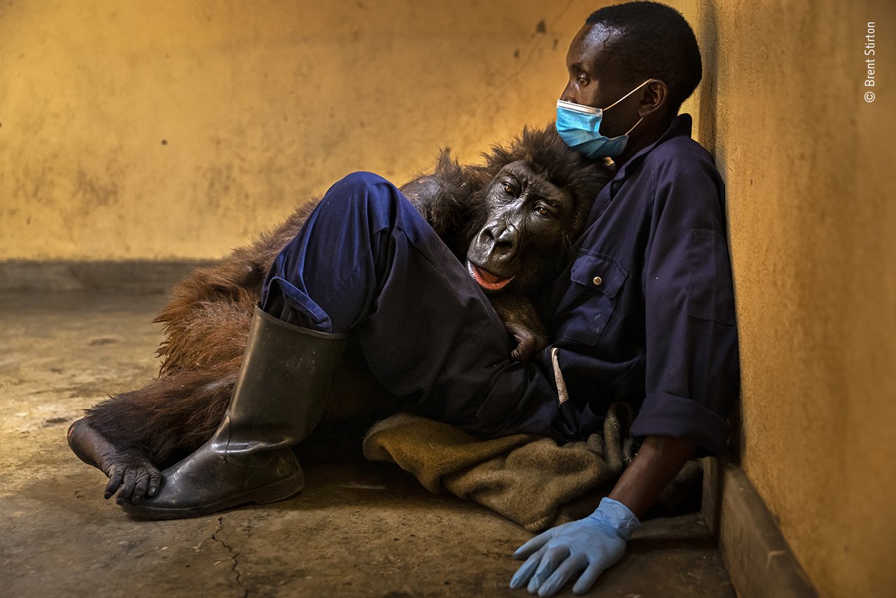 Gorilla Ndakasi was only 2 months old when she became the only surviving member of her family. She was taken in by caregiver Andre Bauma, with whom she spent 13 peaceful years. The photo, taken by Brent Stirton, shows Ndakasi in Bauma’s arms as she passes.