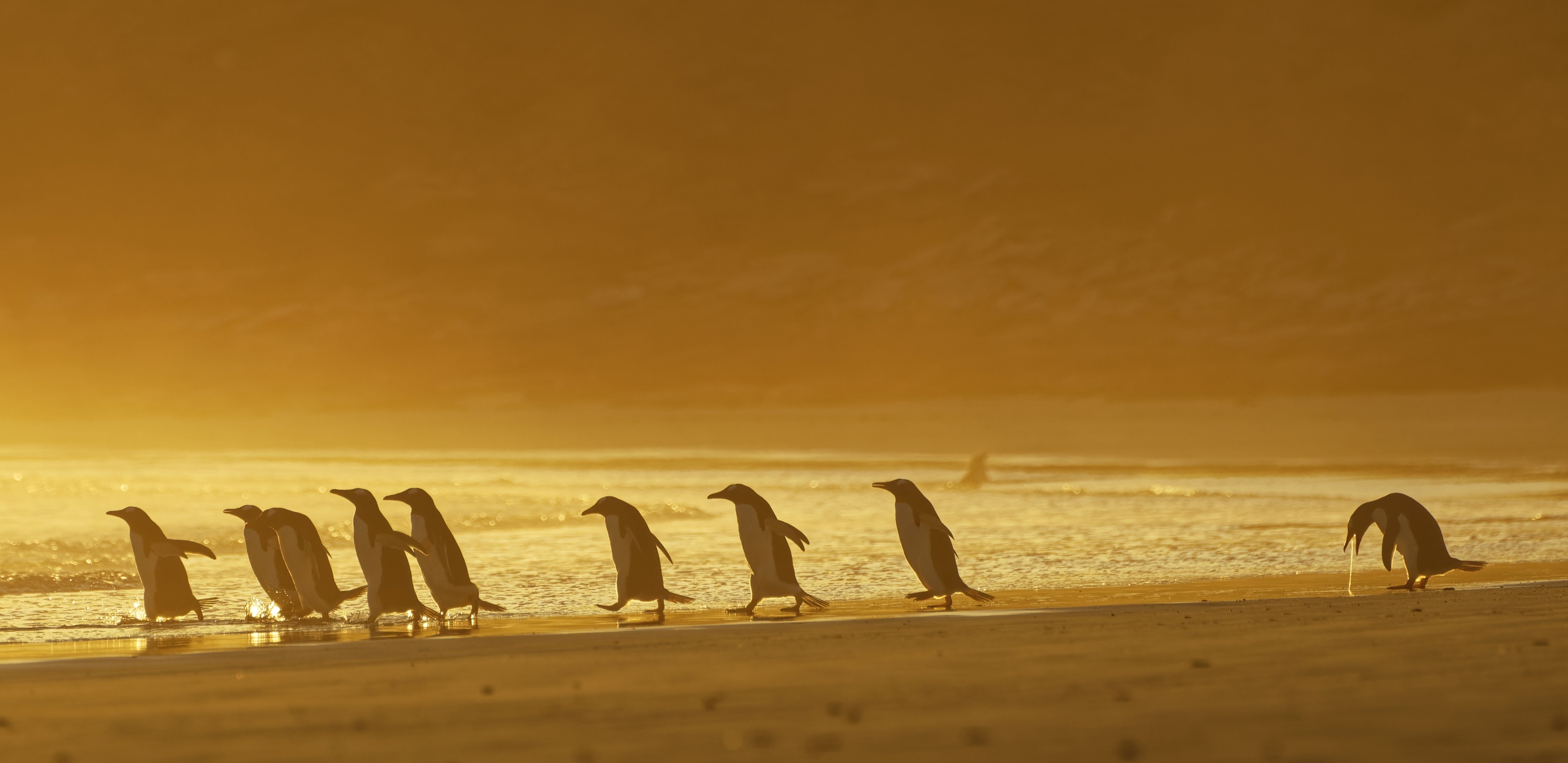 “A hungry brown bear launches headlong into a creek in Alaska’s Katmai National Park to try to catch one of the many sockeye salmon spawning in large numbers during their seasonal migration. Each August, large concentrations of brown bears gather along the rivers and creeks in Katmai, waiting for the annual arrival of salmon from the coast. I observed this scene after a two-hour walk from our camp from atop a cliff. I positioned myself at the cliff’s edge to get a unique perspective looking down on the action below and used a polarizing filter to cut any glare from the water’s surface.” — Charlie Wemyss-Dunn