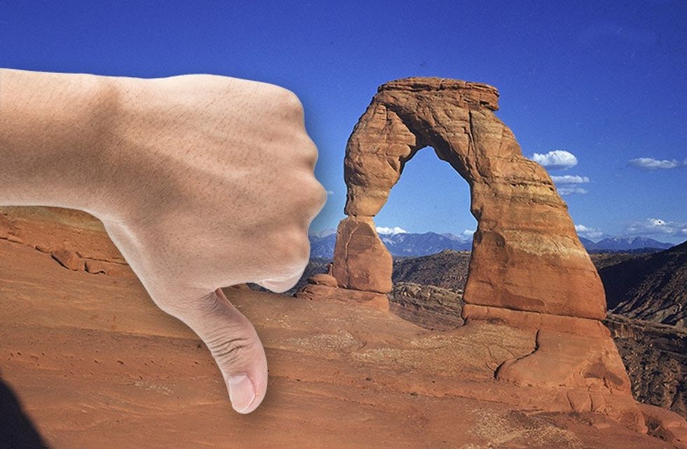 2. Photoshop a giant thumbs-down into a picture of Arches National Park.