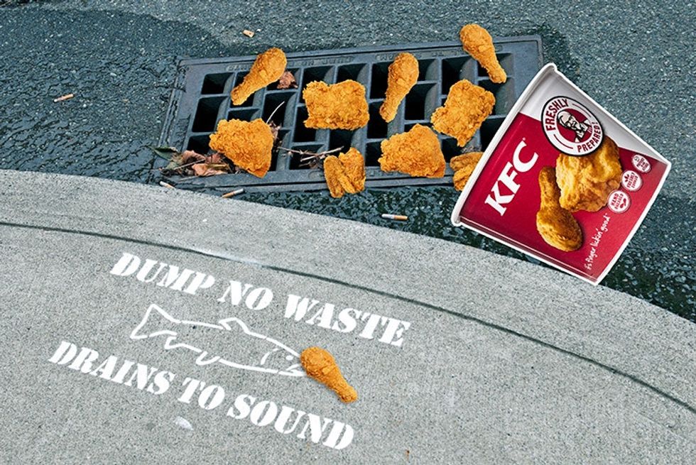 5. Dump a full bucket of Kentucky Fried Chicken down a storm drain.