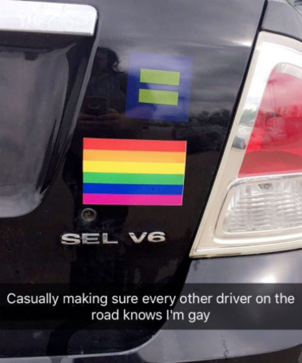 "You know what’s great?" this Tumblr user captioned the photo above. "Putting some gay stickers on your car and promptly remembering Missouri hates gay people."