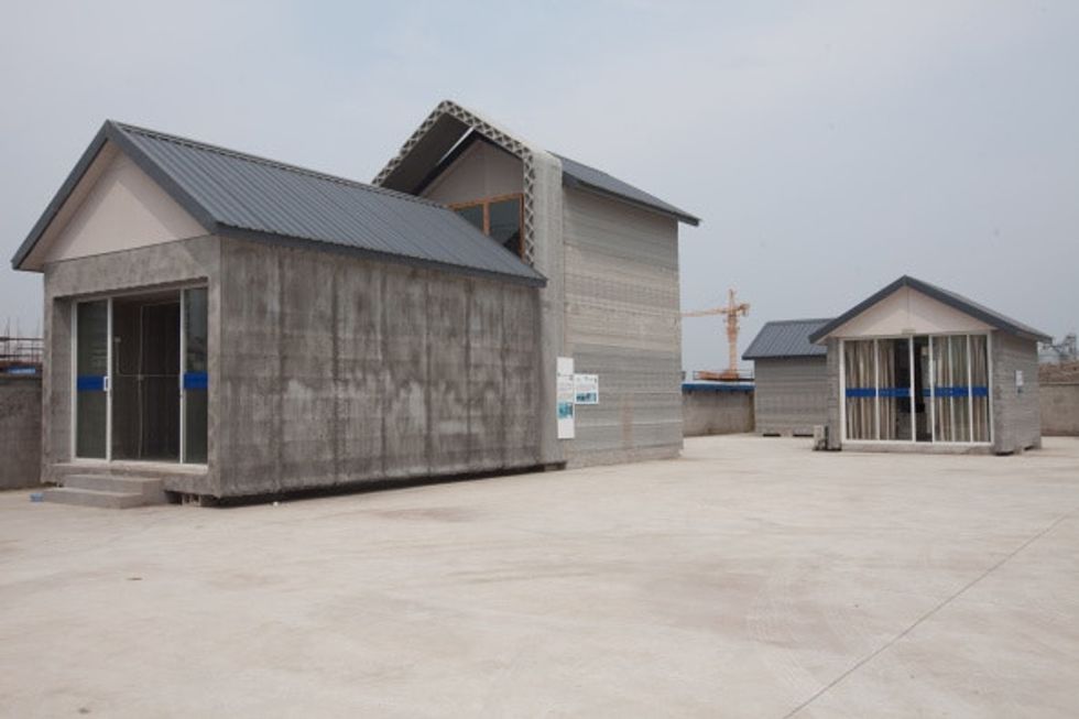 The Shanghai-based WinSun company was also able to 3D-print 10 houses in just one day. (Branch predicts that they can print only 20 houses a year at their current facilities.) WinSun's 3D-printed houses also require some manual assembly, and the fact that they each cost less than $5,000 to make is somewhat offset by the fact that, well, they're kind of hideous industrial eyesores.