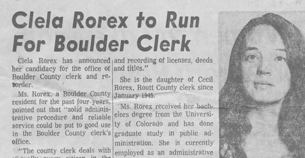 It seems like folks like her might be giving clerks a bad name. So instead, let’s focus on one of LGBTQ history’s unsung heroes: former Boulder County Clerk Clela Rorex.