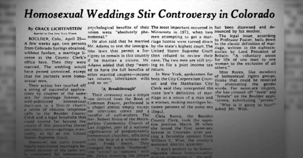 In 1975, Rorex was serving as the Boulder County clerk when two men asked about applying for a marriage license.