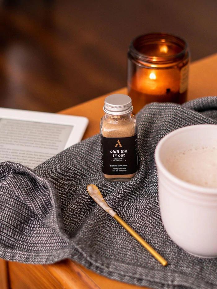 3. Chill the F Out – Literally… and also literally. Sometimes the best thing you can do for self-care is take a load off, but that doesn’t always mean more screen time and endless social scrolling. Consider taking a long walk or a hot bath. If you need a little extra boost the Apothèkary Chill the F Out herb blend might be just the ticket. With a peppermint hot chocolate flavor profile this blend helps reduce inflammation, decrease stress and increase digestive support. Reishi mushrooms, also known as The Queen Healer, have powerful anti-inflammatory properties and Ashwagandha is a popular root adaptogens, primarily used for stress relief and fighting adrenal fatigue. Mix it with water or nut milk for a drink that tastes like as big of a treat as it is!