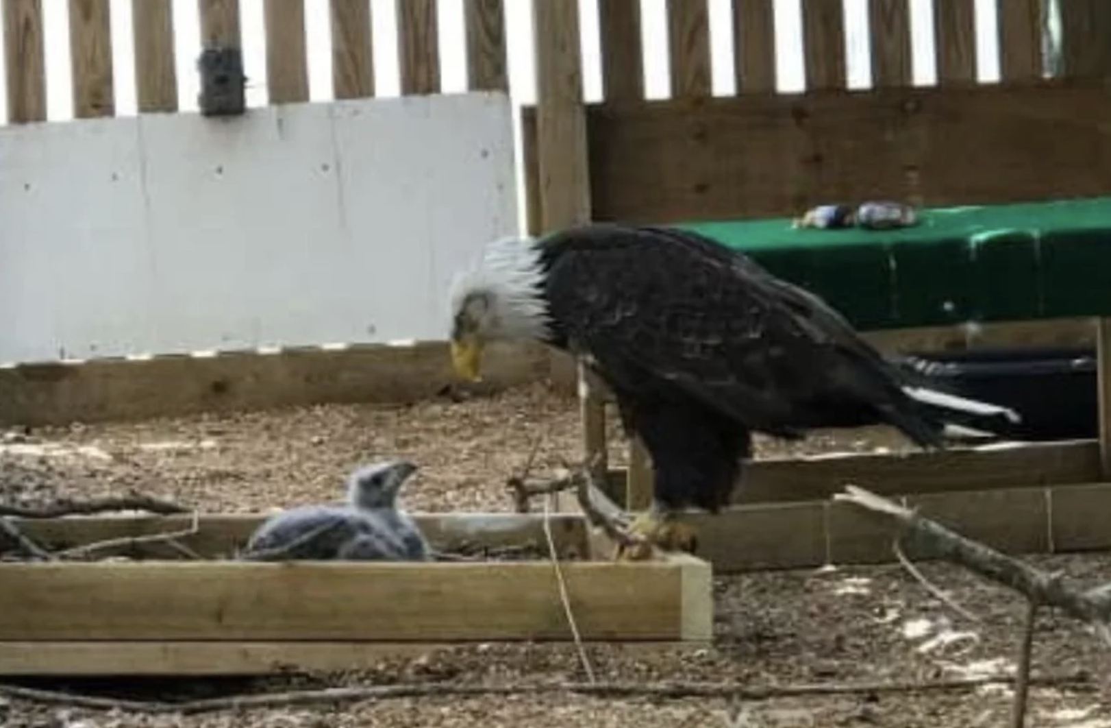 Months later, an eagle chick was brought to the sanctuary after surviving a fall from its nest. When keepers put the baby bird and Murphy in the same enclosure, Murphy’s fatherly instincts kicked into high gear, feeding the baby himself. Now, Murphy has a baby of his very own.