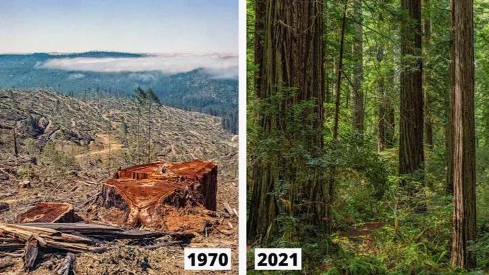 According to a GoFundMe campaign for Dave, he trespassed on private timber land, chartered airplanes to fly over clear cuts, slept on stream banks, and walked over a thousand miles to capture over 5,000 photographs.These photos of redwood destruction were sent all around the world and began raising much needed awareness that the old-growth forests were rapidly disappearing, and that more parks needed to be created.