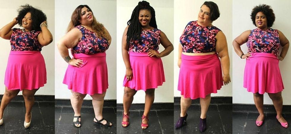 Then, she put five women at a time in the same size of skirt and shirt to show how diversely beautiful human bodies are and to prove that everyone looks different in clothes no matter what size they have on.