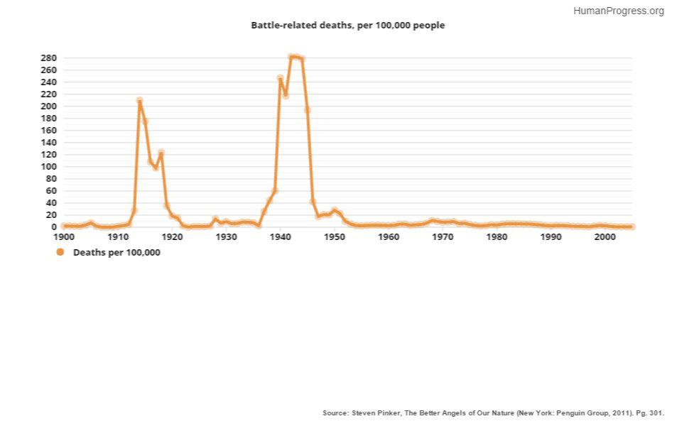 3. Far fewer people are dying in war.