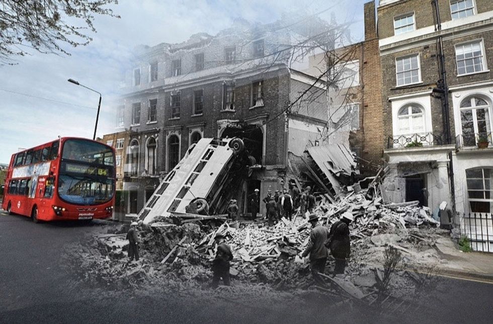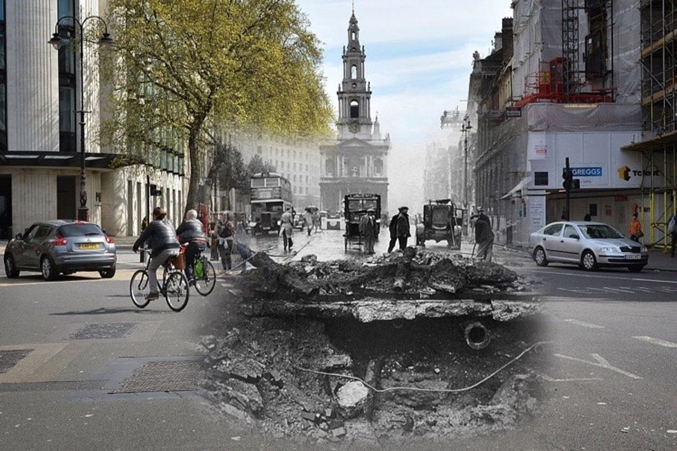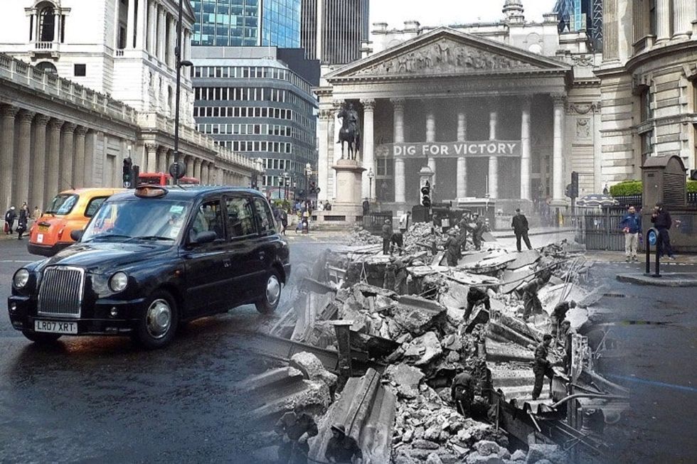 In the photo series below by photographer Jim Dyson, images of today's London have been overlaid with pictures of the destruction from WWII in the same locations, marking the passage of time as well as the healing of scars.