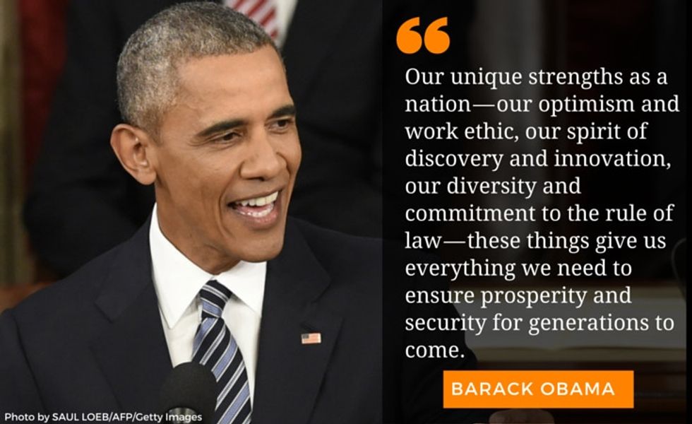 "Our unique strengths as a nation — our optimism and work ethic, our spirit of discovery and innovation, our diversity and commitment to the rule of law — these things give us everything we need to ensure prosperity and security for generations to come.