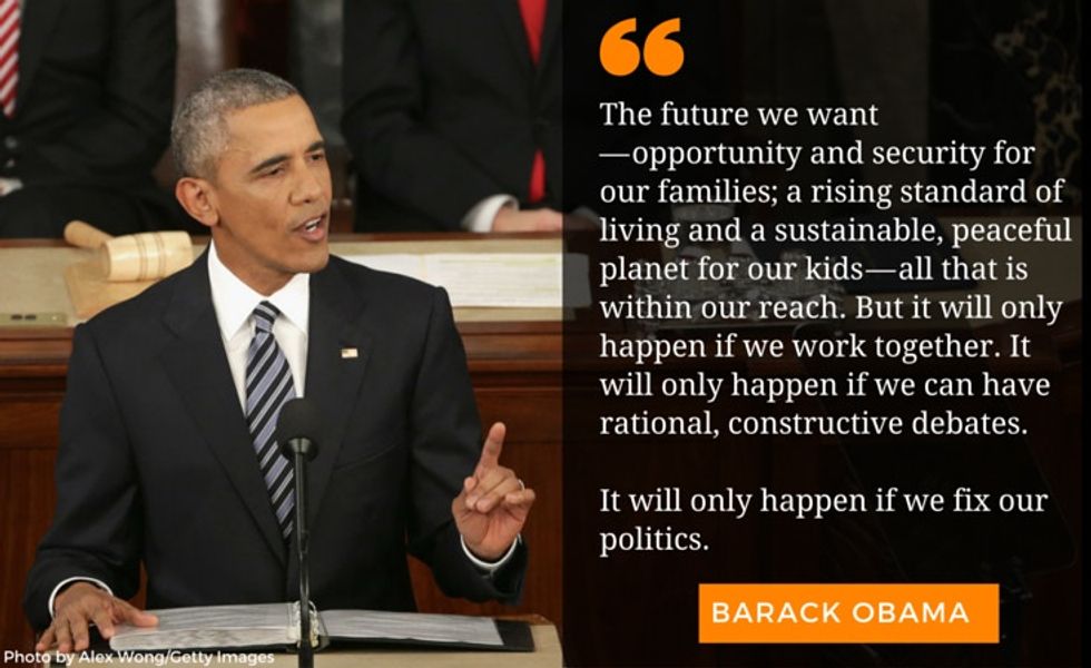 This is some vintage Obama. This is the man who made us believe D.C. didn't have to be what it's so often seen as; he's the man who envisioned a world where Democrats and Republicans could come together to solve the country's big problems. Maybe he was naive, and maybe the rest of us were too, but deep down that hope continues to burn.