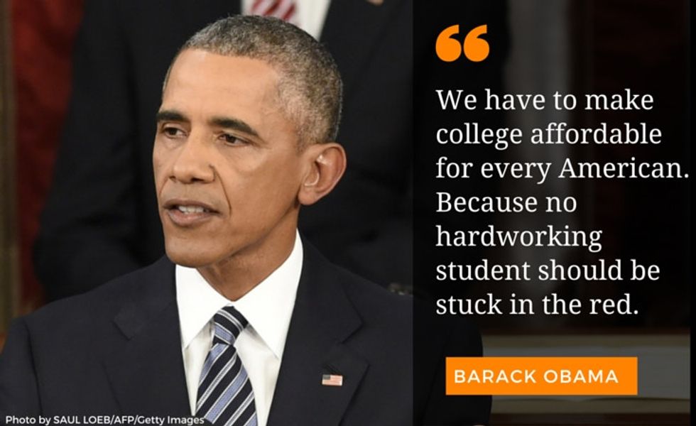 "We have to make college affordable for every American. Because no hardworking student should be stuck in the red. We’ve already reduced student loan payments to ten percent of a borrower’s income. Now, we’ve actually got to cut the cost of college. Providing two years of community college at no cost for every responsible student is one of the best ways to do that, and I’m going to keep fighting to get that started this year.