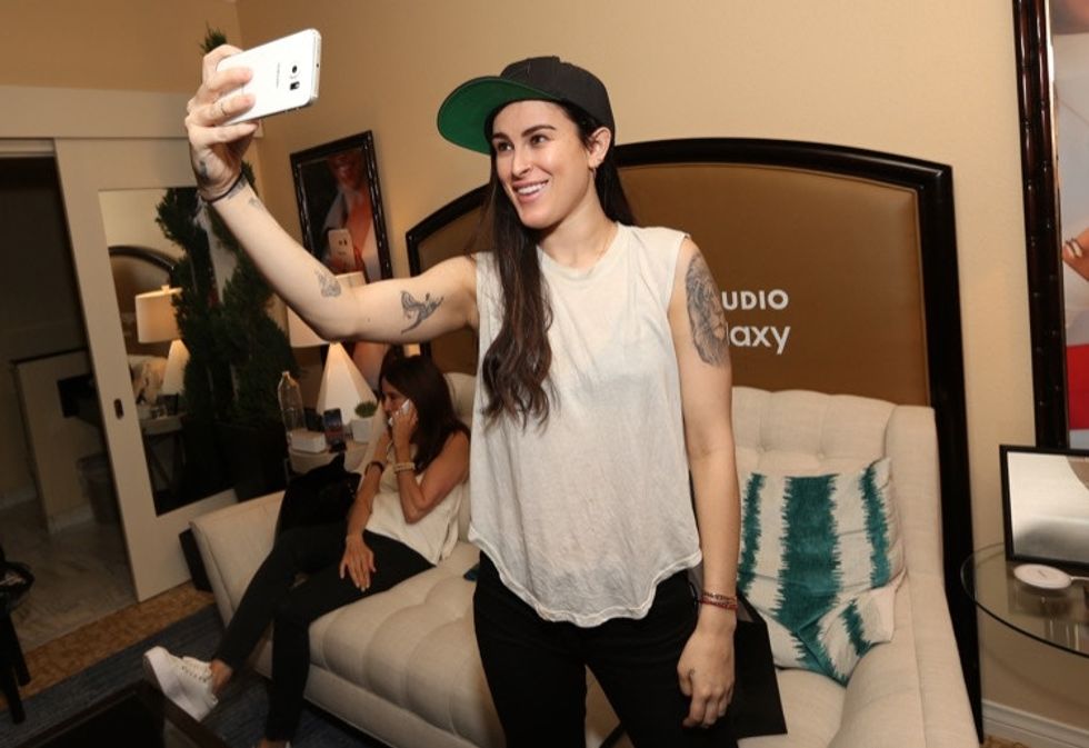 Actress Rumer Willis takes a selfie at the Beverly Hilton Hotel in 2015. Photo by Jesse Grant/Getty Images for Samsung.