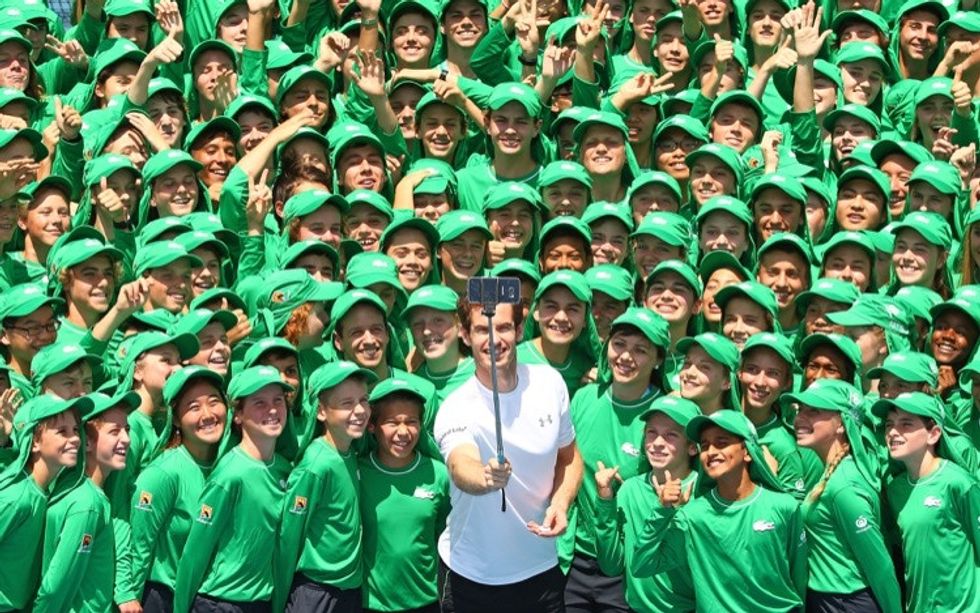 Tennis star Andy Murray with more than 350 ball kids before the 2016 Australian Open. Photo by Scott Barbour/Getty Images.