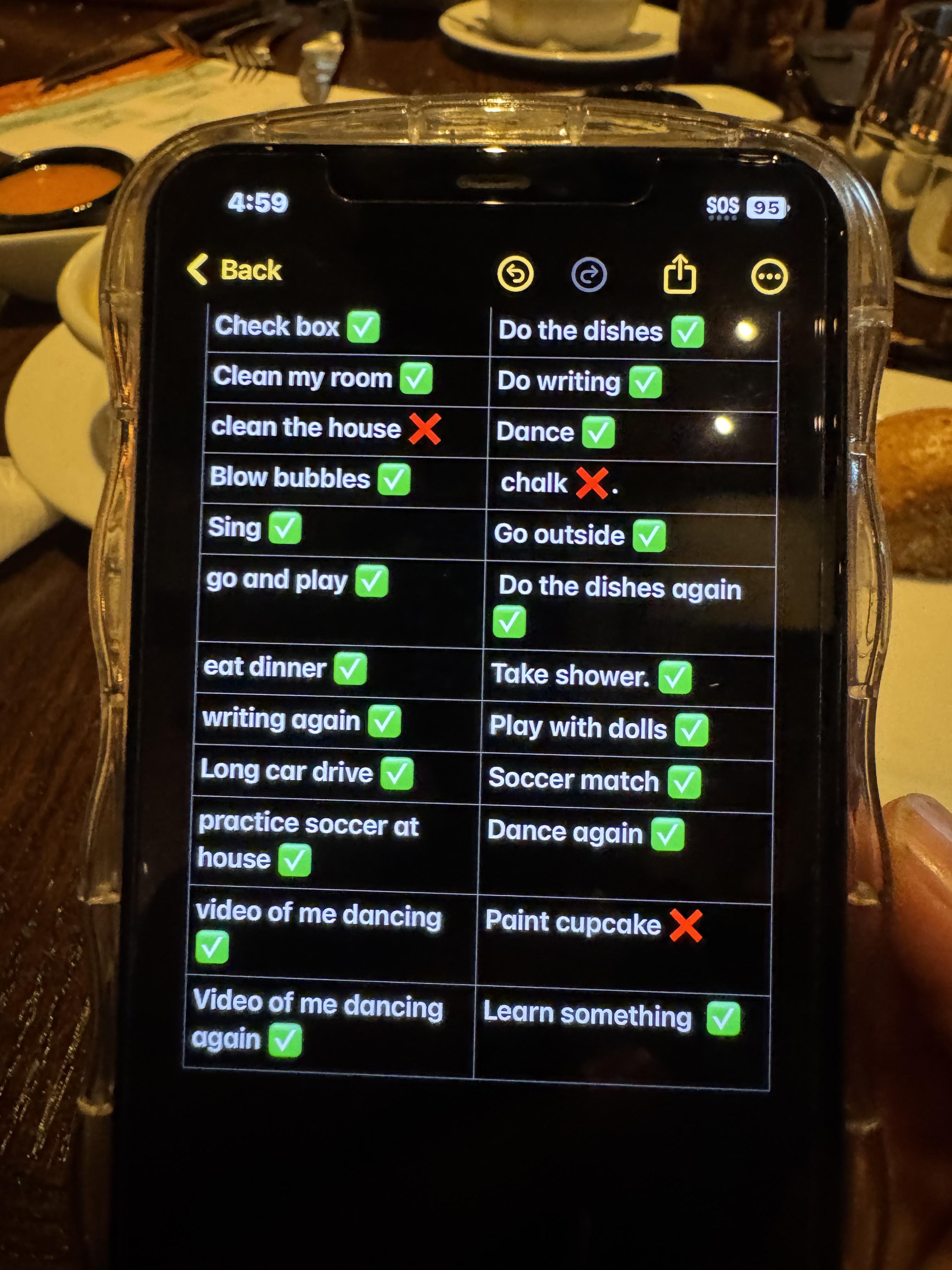 But it’s not all fun and games for this 7-year-old: The list also includes chores like cleaning up, eating dinner (always important), and reminders to ‘learn something.’
