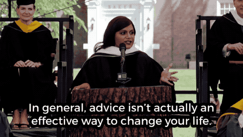 "In general, advice isn't actually an effective way to change your life. If all it took to make your life great was hearing amazing advice, then everyone who watched TED Talks would be a millionaire. So don't trust any one story of how how to become successful."