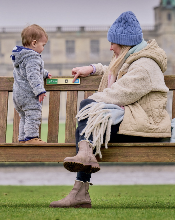 Here’s how it works: bonding benches are being installed at castles, abbeys, and gardens—places where families tend to gather. They’re strategically placed near playgrounds and open grasslands, as well as other spots where parents take a moment for themselves while their kids burn off energy. But these are not ordinary benches.