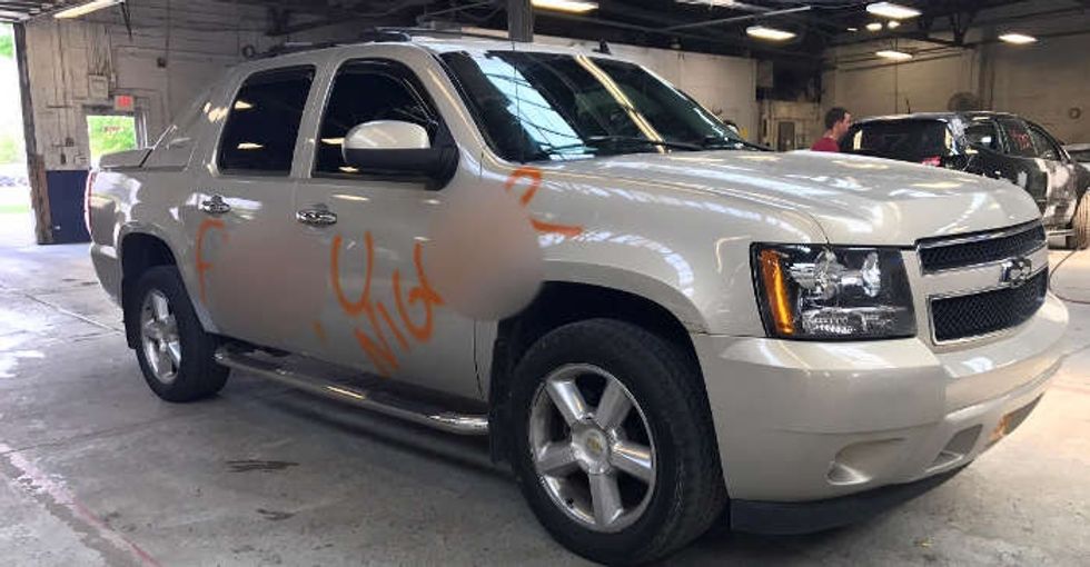 A Buffalo body shop knew just what to do when a truck covered in racist slurs pulled in.