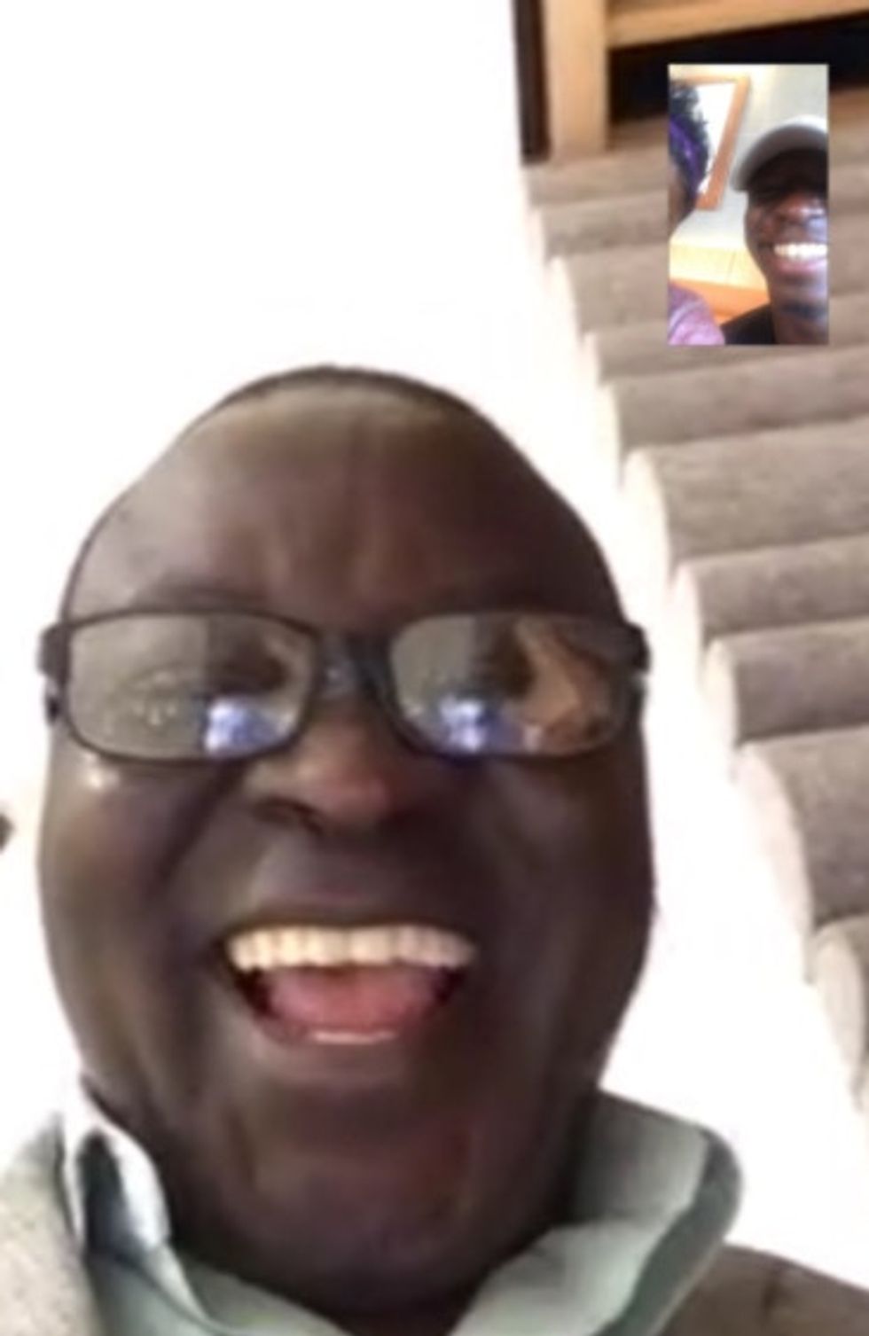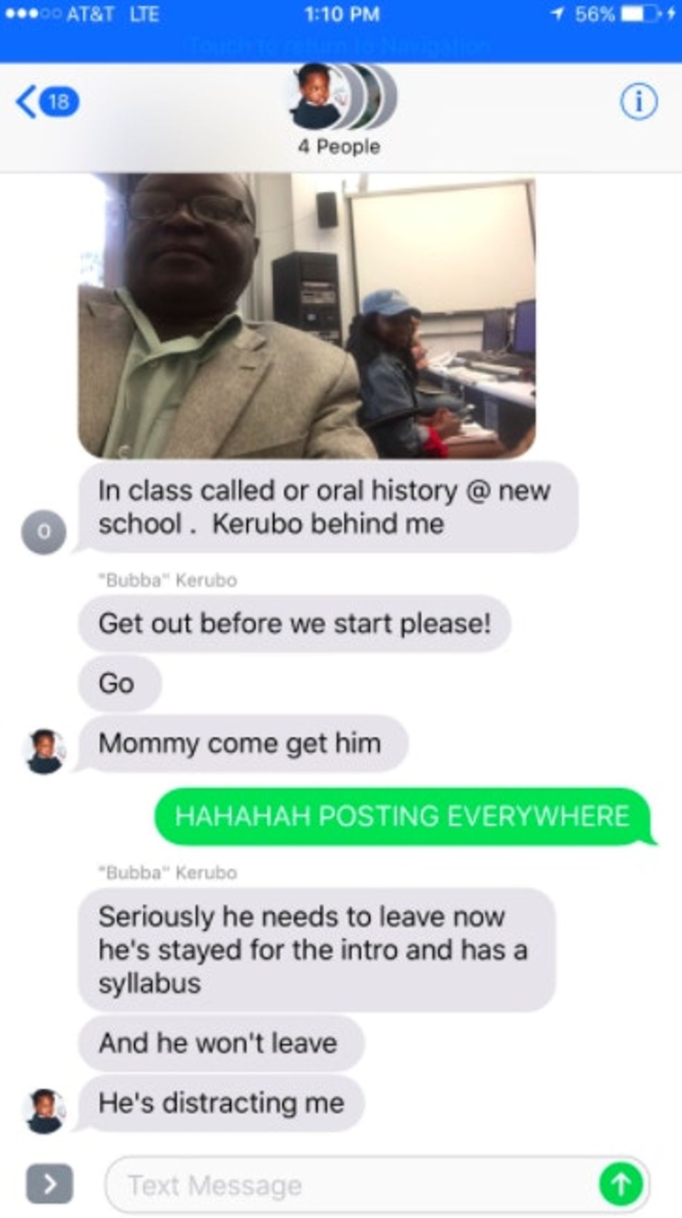 Enock's son, Omete, posted selfies his dad sent him from where he sat in the back row of class with Kerubo.