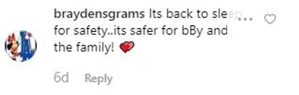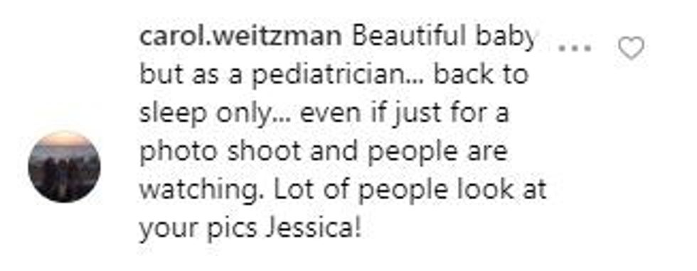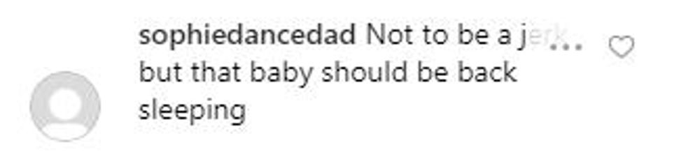 A group of Instagram commenters were quick to point out that babies shouldn’t be sleeping on their stomachs.
