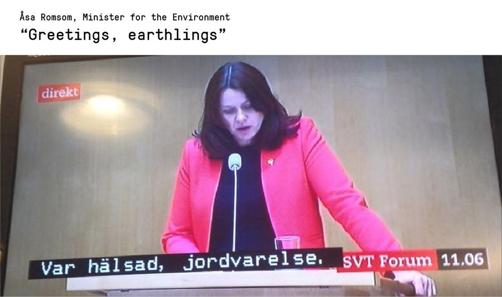 Imgur user The Blonde Swede must have lost his mind when he saw the leader of Sweden’s Liberal party make a surprising declaration in the Rikstag, the country’s national legislature: “Greetings, earth creature.”