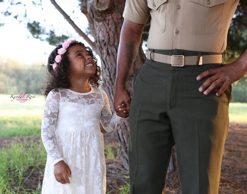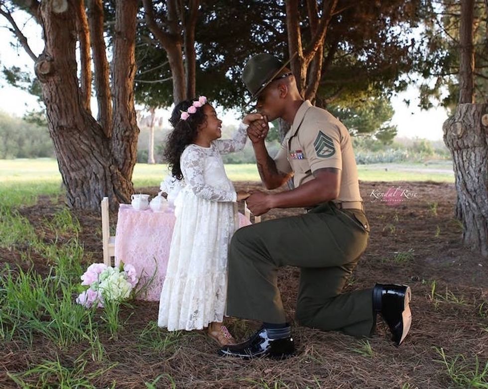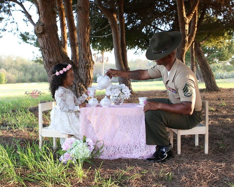 The photos are incredibly moving and touching; the contrast between soldier and princess, father and daughter, and the powerful bond they share sparked thousands to share the series of photos that photographer Kyndal Rose shared on Facebook.
