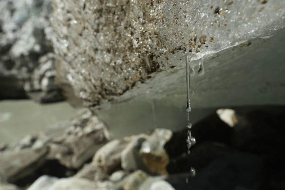 A melting glacier drips away in Austria in August 2016. Photo by Sean Gallup/Getty Images.