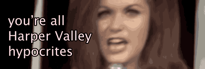 I actually delight in how relevant this song is. So let's go through the relevance, nay the GREATNESS, that is the song, "HARPER VALLEY PTA."
