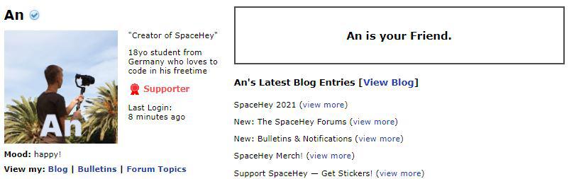 “Most social media platforms these days are incredibly toxic,” a user named Kelly says. “In the three weeks I’ve been on spacehey I’ve experienced more love and support from people than I have in the last five years on all of my social media platforms combined. It’s definitely refreshing.”