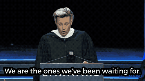 "As you go out into the world: Amplify each others' voices. Demand seats for women, people of color and all marginalized people at every table where decisions are made. Call out each other's wins just like we do on the field, claim the success of one woman as a collective success for all women. Joy. Success. Power. These are not pies where a bigger slice for her means a smaller slice for you. These are infinite. In any revolution, the way to make something true starts with believing it is. Let's claim infinite joy, success, and power — together."